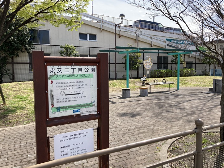 柴又二丁目公園は、平成十六年3月31日に開園した面積が909uの小さな公園です。可愛い動物系遊具が多く、幼児サイズの遊具なので子どもと一緒に楽しめます。