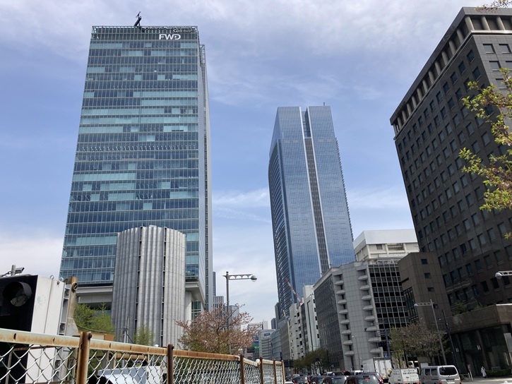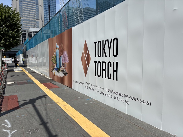 永大通りに面して、東京駅前常盤橋プロジェクト(大手町二丁目常盤橋地区第一種市街地再開発事業):「TOKYO TORCH」が進行中です。A棟からD棟まで4棟の建物が計画されていて、そのうちのB棟は最高層の建築物で、2023年9月27日に着工し、竣工は2028年3月31日の予定となっています。地上高は385mで、完成すると大阪市阿倍野区にあるあべのハルカス(高さ300m)や2023年6月30日に竣工した麻布台ヒルズ森JPタワー(高さ325m)を凌ぎ、日本のビルとしては初めて東京タワー(高さ333m)を超える日本一高いビルとなります。2025年8月現在では、未だ基礎部分を構築している段階のようです。