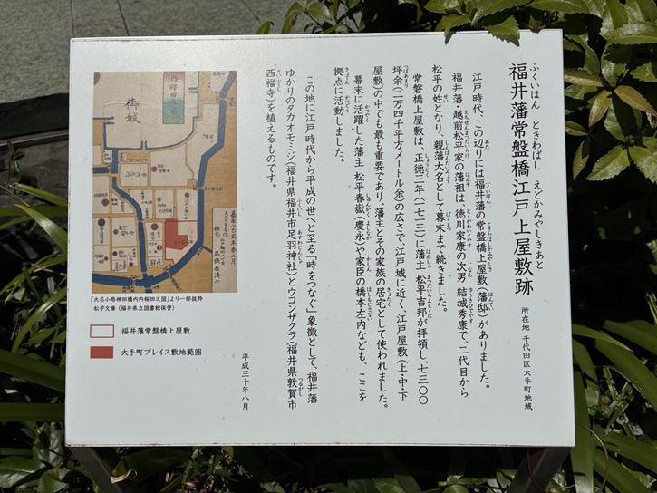 大手町プレイスの敷地内には、江戸時代に越前福井藩の常盤橋江戸上屋敷がありました。