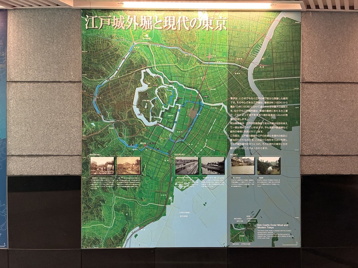 東京メトロ虎ノ門駅付近には、外堀の石垣が数カ所に残っている。寛永十三年(1636年)、佐賀藩主鍋島勝茂らによって江戸城の総仕上げとしてつくられた。虎ノ門駅の文部科学省連絡通路内で見ることができる。説明板には、当時の石積工法も記されている。