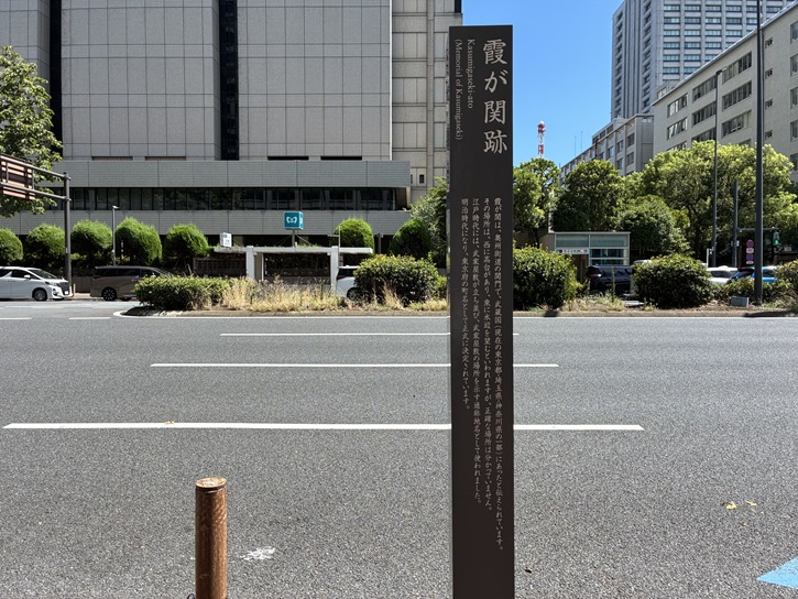 駅入口の脇に、「霞が関跡」の案内柱が立っています。
