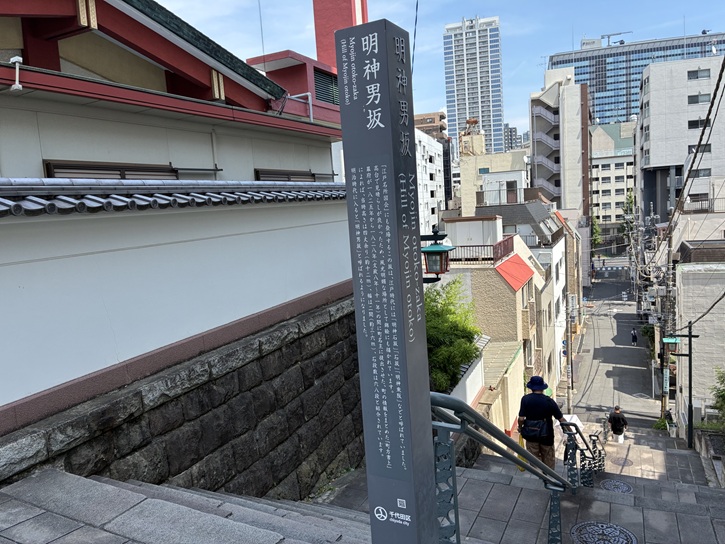 赤坂見附交差点から都道府県会館前付近まで坂が上っています。富士見坂は長さが約210mほどの緩やかな坂で、別名を水坂といいます。上空を首都高速道路都心環状線(C1)が通っています。かっては坂上から西側の地平線が見渡せ、富士山がよく見えたことから坂名が付けられたと思われます。この辺りには江戸時代に雲州松江藩松平出羽の屋敷がありました。別名の「水坂」は、松平家が赤坂御門御水番役であったことに由来しています。
