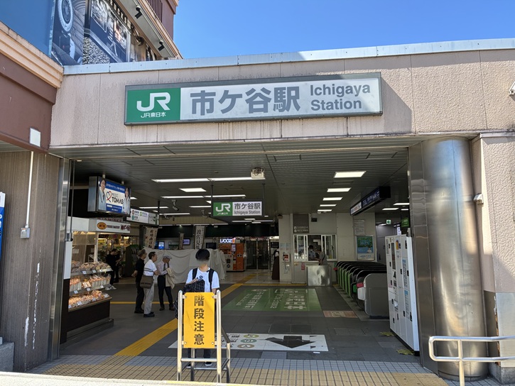 スタート地点の東京メトロ市ヶ谷駅出口1から歩き始めます。