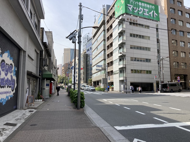 蔵前橋通りに出て妻恋坂交差点で右折し昌平橋に入ります。神田明神下交差点で右折し、直ぐ先の交差点を左折したところに外神田二丁目交差点があります。