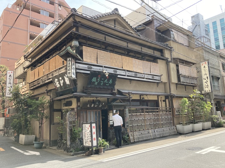 筋違門跡の案内板のところでJR中央線の高架煉瓦塀沿いから離れ、須田町交差点に向かいます。通りの四つ角に面して古風なお店が建っています。江戸末期の天保元年(1830年)、十一代将軍徳川家斉が国を治めていた頃、中橋広小路(現在の京橋三丁目付近)で初代にあたる立川庄蔵が「いせ庄」というどじょう屋を始めました。その後、二代目立川源四郎が店を中橋広小路から神田連雀町に移し、店名も「いせ庄」の‘いせ’と「源四郎」の‘源’を合わせ、「いせ源」と改名しました。今でこそあんこう料理の専門店として暖簾を掲げていますが、当時はあんこう鍋の他にも、よせ鍋・かき鍋・白魚鍋・ねぎま鍋などなど、様々な鍋料理を提供していました。しかし、あんこう鍋に人気が集中するようになり、大正時代の四代目立川政蔵の代にあんこう料理専門の店となりました。以来、東京で唯一のあんこう料理専門店として親しまれています。大正十二年の関東大震災によってお店は全焼しましたが、現在の店舗の建物は昭和五年に建て直したものです。幸運にも戦災を免れ、今も当時と変わらぬ昔ながらの風情を残しています。建物は、東京都選定歴史的建造物に選定されています。