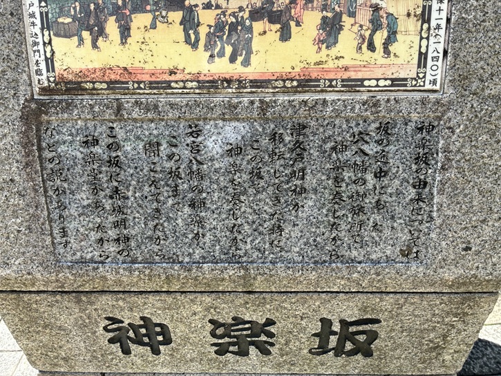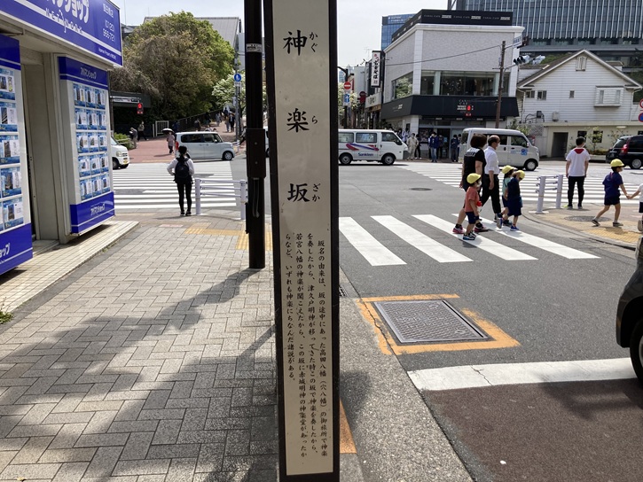 - 津久戸明神が移転してきた時にこの坂で神楽を奏したから