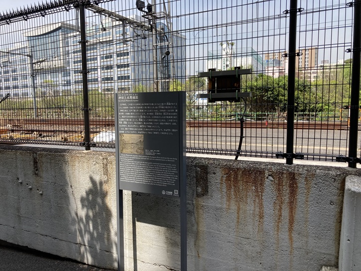 what was discovered at the site and describing the weir' s appearance can be found at the exhibit on the platform at JR lidabashi Station. The exhibit is located in the vicinity of the site under Ushigome-bashi Bridge, where the weir was actually discovered.