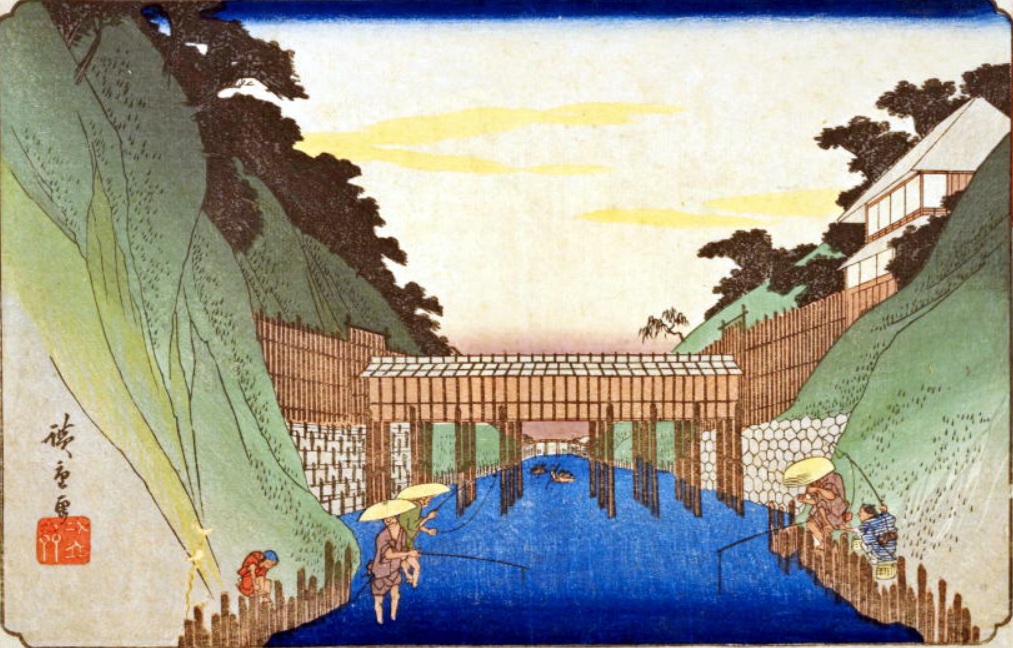 More than just a component in Edo Castle's defense structure, the outer moat was also a verdant, waterside leisure space much loved by city residents. Depictions of the outer moat were frequently included in Tokugawa-era collections of woodblock prints. One famous collection entitled the One Hundred Famous