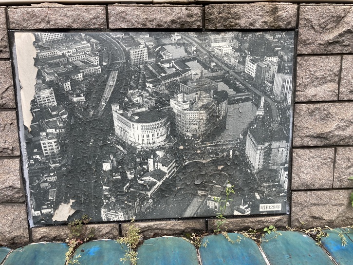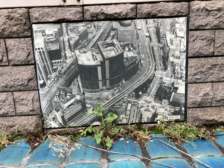 地下駐車場への取り付け道路の壁に、数寄屋橋の変遷の写真が貼られています。危ないですねぇ。まさか近づいて写真なんか撮らないでしょうね?