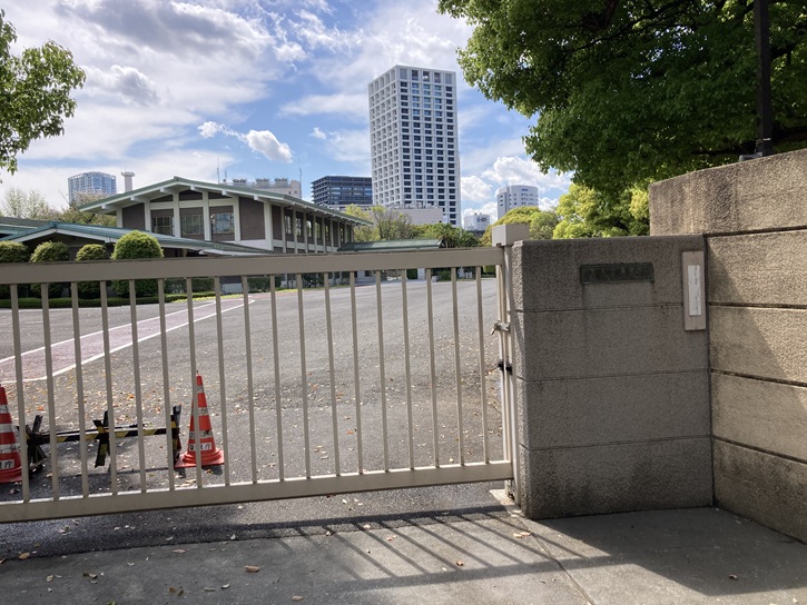 みゆき通りの名称の由来について記されています。小学校にこのような立派な門扉があるのは泰明小学校くらいなものでしょう。