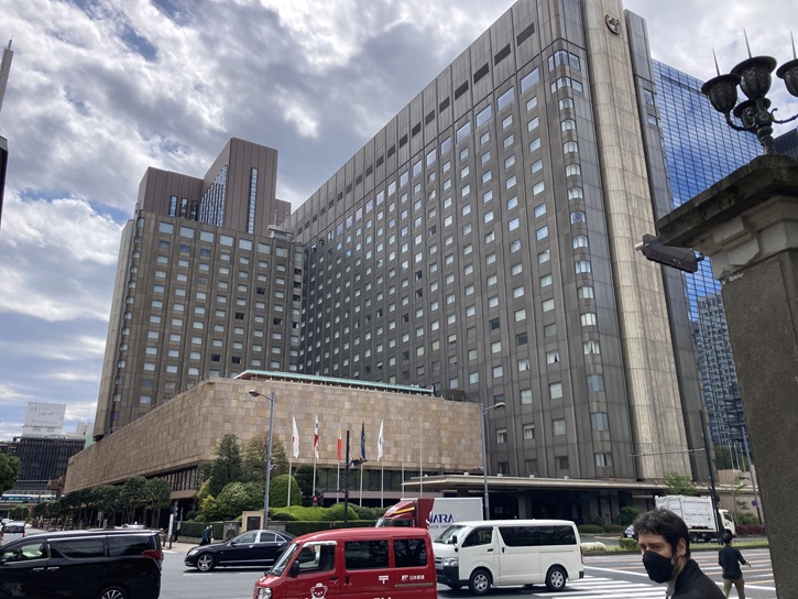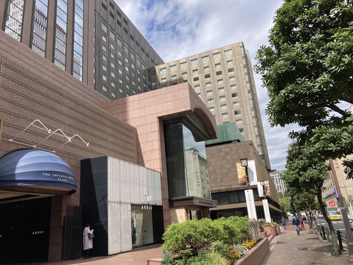 赤坂見附交差点に面して、翼を広げたような優雅な曲線を描いた赤坂エクセルホテル東急が建っています。昭和四十四年(1969年)9月13日に「赤坂東急ホテル」として赤坂見附の外堀通り沿いに開業し、東急ホテルズのブランド再編成に伴い、令和四年(2002年)4月1日に「赤坂エクセルホテル東急」と改称しました。入居する建物の賃借契約の終了により、令和五年(2023年)8月31日のチェックアウト・朝食をもって営業を終了し、53年間の歴史に幕を下ろしました。左の写真が2022年4月に撮ったもので、右が2025年8月に撮ったものです。