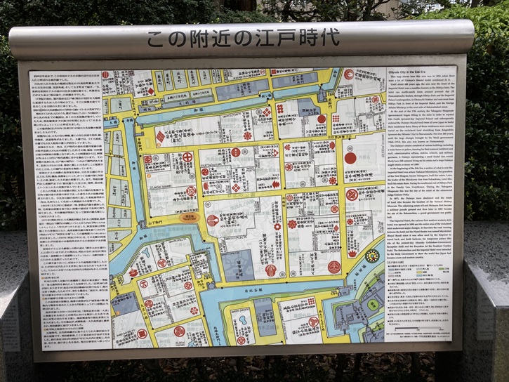 帝国ホテルの前の歩道に、「この附近の江戸時代」と題した詳細な案内板が立っています。