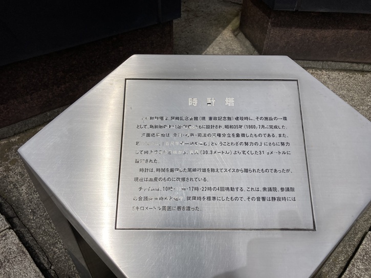 晴海通りに出ます。数寄屋橋公園の手前の歩道上に明治大学発祥の地の碑が置かれています。さすが明大建学の碑、ピッカピカに磨かれていますね。