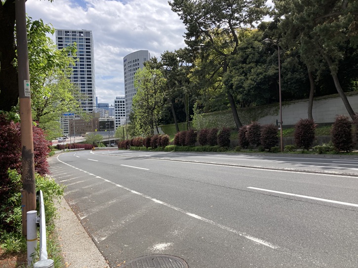 麹町四丁目交差点で左折し、紀尾井町交差点で右折すると、長い坂が下っています。