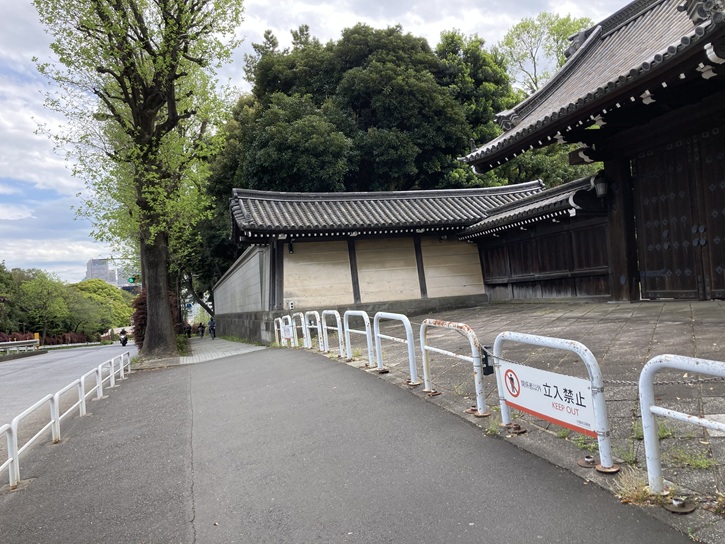 紀之国坂交差点の西側に、赤坂迎賓館東門(紀州藩徳川家中屋敷表門)が建っています。赤坂迎賓館東門は東大赤門と同じ薬医門(中位の格式の門)で、迎賓館赤坂離宮がネオ・バロック様式の建物なので違和感はありますが、迎賓館が建っている場所は元々紀州徳川家の中屋敷があった場所で、東門は紀州徳川家藩邸の門なのです。薬医門とはいえ立派な門です。