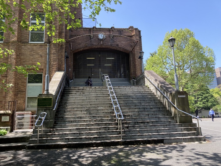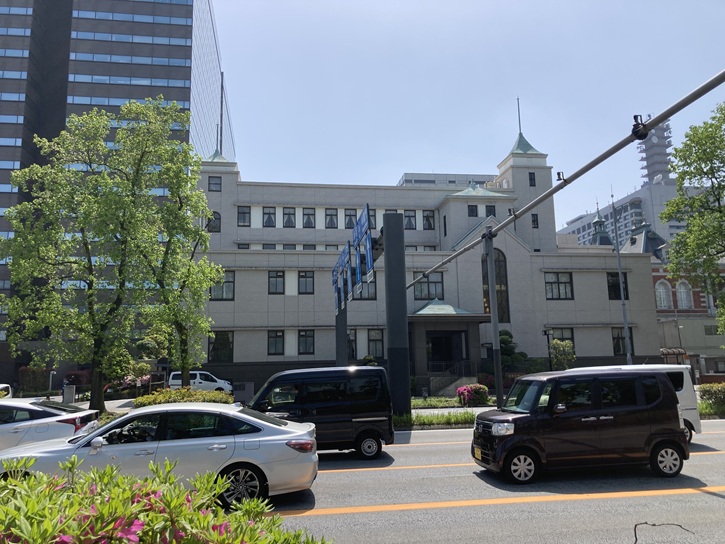 法曹会館は、千代田区霞が関一丁目1番地にあり、近代的な官庁街区の中に、昭和十一年に竣工し、戦時中に周辺の施設が焼失する中で、空襲の戦災をまぬがれ、当時の姿を今も残した洋館です。法曹会館は、羽前米沢藩上杉家の上屋敷跡に建てられました。明治維新を経て、大名屋敷が「上知」(政府による没収)となると、上杉家上屋敷(米沢藩江戸屋敷桜田邸)跡は兵部省の所管となり、明治四年(1871年)に陸軍操練所(明治十八年に日比谷練兵場と改称)の一部となり、その後、明治二十八年には旧司法省庁舎(赤煉瓦)の隣地になりました。法曹会館の窓から見える景色は、正面(北側)には碧水のお濠、そして松の石垣の先には典雅な皇居を望み、左(西側)には画趣豊かな桜田門を眺め、右(東側)には近代的な丸の内・有楽町の高層建築に接し、一望の下に新旧時代の粋を満喫する景観は他に類を見ない環境にあります。明治二十四年(1891年)、時の大審院長児島惟謙の提唱により、法律研究のための任意団体として発足した法曹会は、明治三十九年に当時の司法省敷地内(東京市麹町区西日比谷町1番地)に木造の会堂「法曹会会堂」を建築しました。昭和二年、関東大震災の影響や東京民事裁判所の増築に伴い、司法省東南裏へ移築(旧日弁連)されました。その後、昭和十一年(1936年)12月に現在の場所に耐震耐火構造の美観的な会館を新築しました。法曹会館の設計は、大正から昭和期にかけて活躍した建築家で、三菱合資会社地所部の藤村朗氏、施工は竹中工務店が行ないました。基礎工事には長さ五十尺(約15m)の松材が多数使用され、地中に埋められたこの松材は地下水の存するかぎり永久の生命を保つとされ、今もなお法曹会館の基礎を支えています。法曹会館は、周囲の風景と調和する秀逸な麗容と耐震・耐火の堅牢性を兼ね備えた昭和初期における名建築のひとつとされています。戦災を免れた館内の内装にはイタリア産の大理石や和やかな雰囲気を醸し出すタイル張りなど、今もなお竣工当時のものが数多く残されていて、千代田区に残る歴史的な価値のある建造物として、平成十五年に「千代田区景観まちづくり重要物件」に指定されました。また、法曹会館は終戦直後の一時期、大審院(大日本帝国憲法下の最高裁判所)が使用することになり、1階の一室(現ロビー)には法廷が設けられ、実際に開廷されたこともありました。建築当時、水交社・学士会館・茗渓会館などの倶楽部建築を参考にし、鉄筋コンクリート造・地階・五階建・延坪962坪でした。昭和の激動を乗り越えてきた法曹会館には、その隅々にまで時代の記憶が刻まれています。