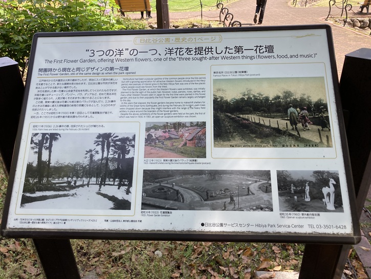 Horticulture had been a popular pastime of the common people since the Edo period. but with a growing appreciation for attractive Western flowers introduced in the Meiji period, new avenues of interest grew in the field. Hibiya Park was one of the few places where people could see flowers from the West. The First Flower Garden, at which the Western flowers were exhibited, was initially planned to be the sight of the public hall. However, tulips, pansies, roses, dahlias, and many other Western flowers seen in Japan for the first time were planted in this flower garden, and due to their popularity the First Flower Garden remains largely unchanged to this day. In the years that elapsed, the flower gardens became home to makeshift shelters for victims of the Great Kanto Earthquake, and during the February 26 Incident, palm trees were chopped down because they might interfere with the range of the heavy field artillery in place around the boarders of the flower gardens. Despite the above, exhibitions of the flower gardens were held at the park, the first of which was held in 1930. In 1951, an open-air sculpture exhibition was shown.