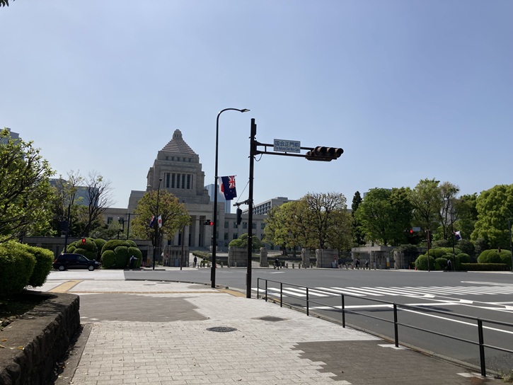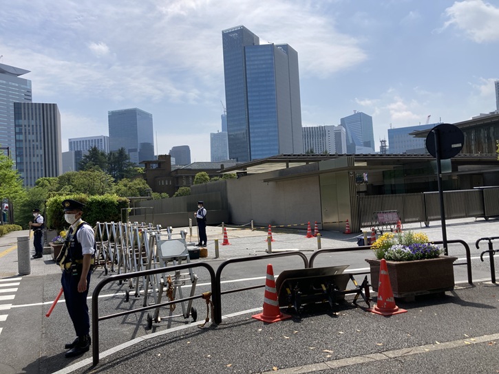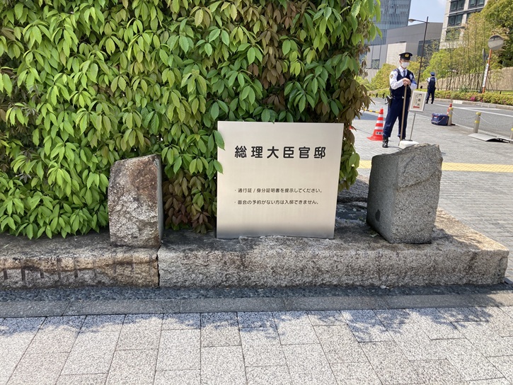 旧官邸(現在の首相公邸)は、中央左の焦げ茶色の建物です。