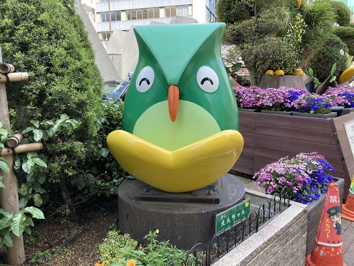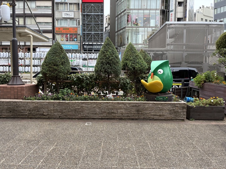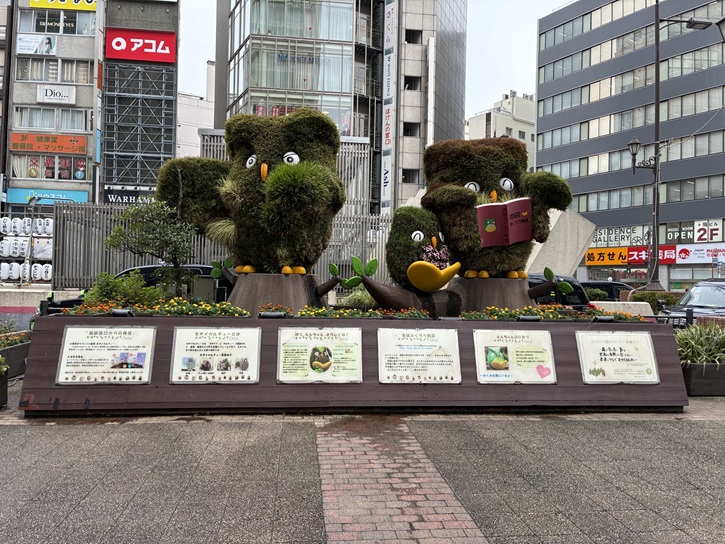 西口駅前広場の奥の花壇に、池袋のキャクターが並んでいます。