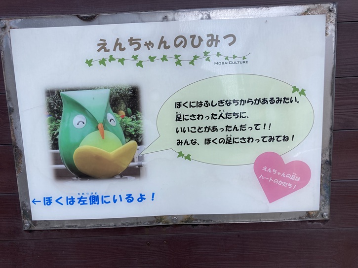 えんちゃんの足はハート形になっています。触るといいことが起きるそうです。