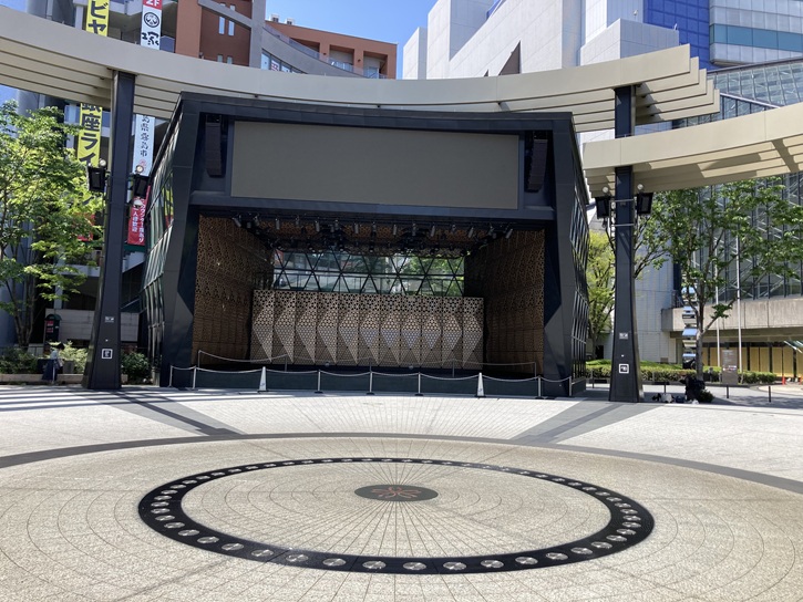 演劇に対応した幅11.8メートル・奥行き5.4メートルの野外ステージ「グローバルリング シアター」やその上部の大型ビジョンも設置されました。これは地元の立教大学卒業生と池袋西口商店街連合会の働きかけにより、区内の商工団体などで構成された「元気な豊島をつくる会」によって建てられ、区に寄贈されたものです。平成十六年(2004年)3月に同会によって開閉式ルーフも寄贈され、雨天でも催しを行うことが可能になりました。舞台棟には演奏音を50%だけ反射する反射板などを用いて、屋外では難しいとされるクラシックの生コンサートを可能にした他、大型サイネージや1万個以上のLED照明・スピーカー・ライブカメラを備え、様々なアクティビティにも対応しています。