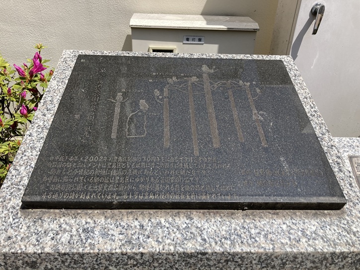 This monument was presented to the City of Toshima on July 12, 2005, from the honorable Begum Khaleda Zia, Prime Minister of the Government of the People's Republic of Bangladesh, as a symbol of the cultural exchanges between Toshima and Bangladesh, which started with the Boishakhi Mela (Bangladeshi New Year festival) held by Japan Bangladesh Society in Ikebukuro West Exit Park.