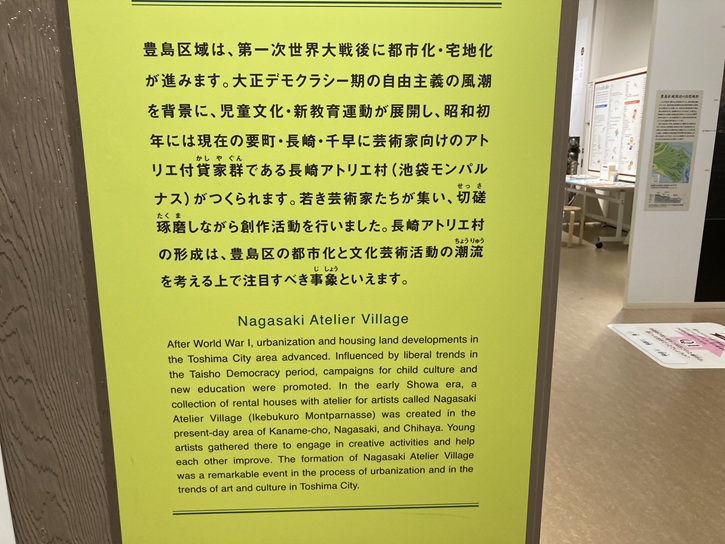 After World War I, urbanization and housing land developments in the Toshima City area advanced. Influenced by liberal trends in the Taisho Democracy period, campaigns for child culture and new education were promoted. In the early Showa era, a collection of rental houses with atelier for artists called Nagasaki