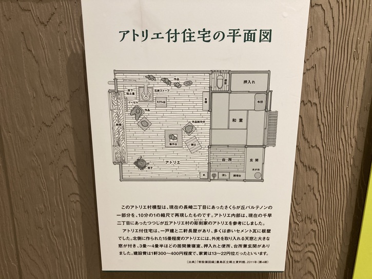 - 豊島区の歴史や民俗に関することがパネルで紹介されており、資料や収集品などの展示を行っています。戦後の焼け跡に建てられた池袋ヤミ市や、モダニズム文化の始まりし頃の長崎アトリエ村を再現した模型は、当時の街の雰囲気がリアルに伝わってきます。また期間限定で、趣向を凝らした企画展も実施しています。