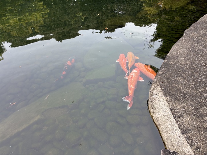 池には丸々と太った錦鯉が悠然と泳いでいます。