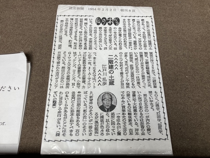 江戸川乱歩は、作品中で「この店は池袋名物のうちでも光った存在のひとつであろう」書いています。江戸川乱歩はあまり酒を飲まず大の甘党でしたが、着流し姿でフラりとお店に立ち寄っていたそうです。品物の準備が出来る間、店主との会話を楽しんだり、熨斗に自身で筆を走らせたりする事もあったとか伝えられています。