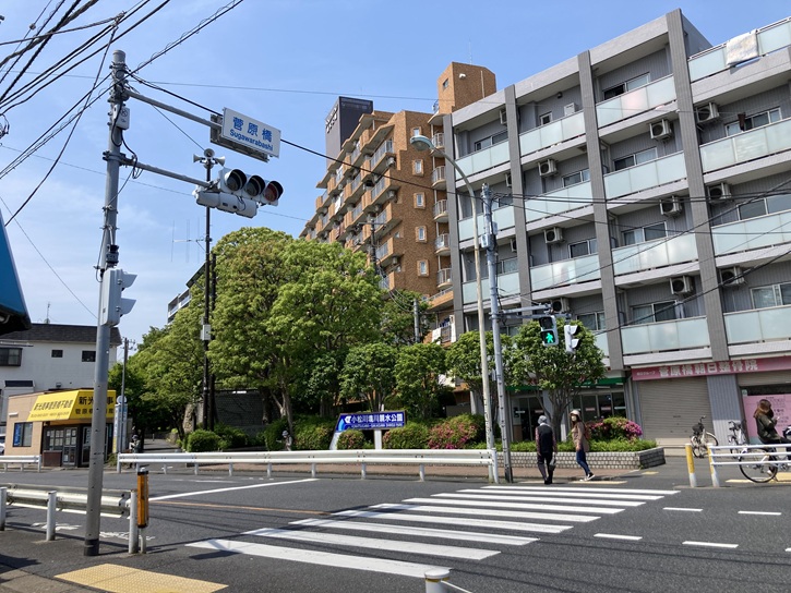 スタート地点の菅原橋交差点から歩き始めます。