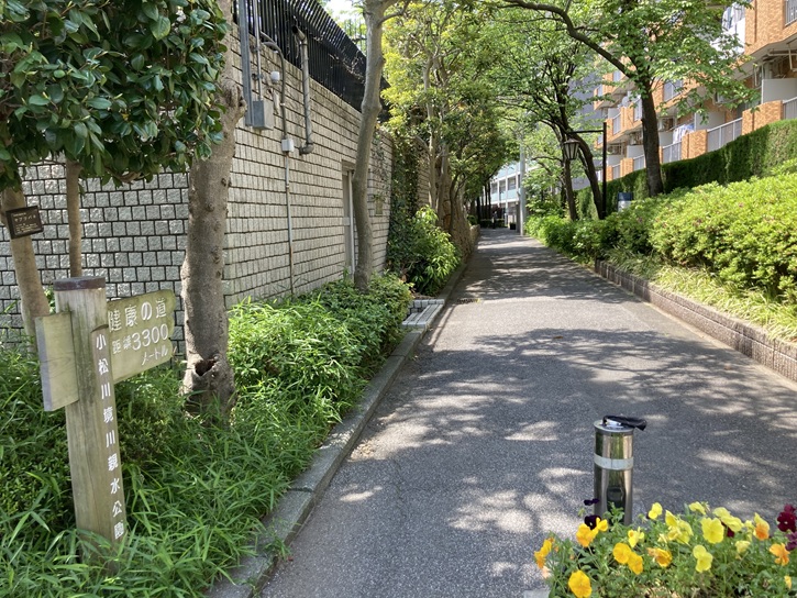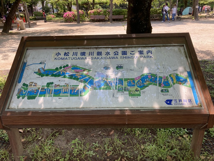 水路沿いの植栽は手入れが行き届いています。小松川境川親水公園を「愛する会」が結成されていて、清掃活動やイベントの実施などが積極的に行われているとのことです。
