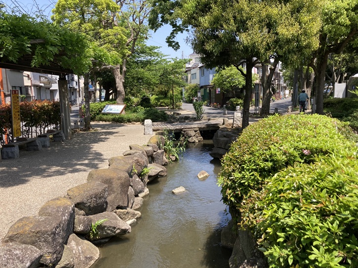 もう一枚の案内板があります。今は人工のせせらぎが流れるだけですが、かっては川船が行き交う大きな水路でした。