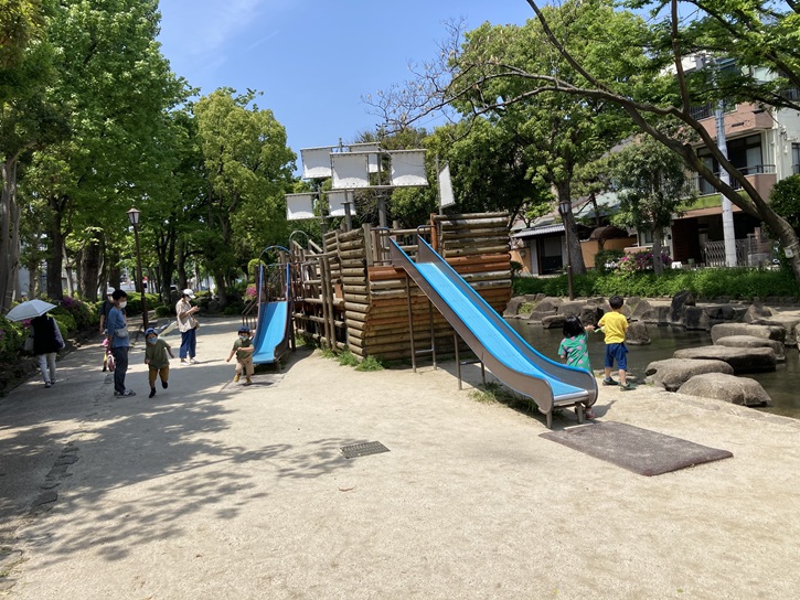 小松川境川親水公園に隣接した中央森林公園は、公園全体が美しい緑に囲まれ、夏には水遊びをすることができます。公園内には遊具やアスレチックが充実していて、一日中楽しむことができます。