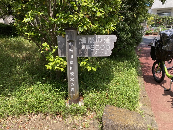 江戸川区では、ウォーキングや散策などが気軽に楽しめるように、親水公園を始め江戸川の堤防上などを「健康の道」として整備しています。小松川境川親水公園の健康の道もそのひとつです。