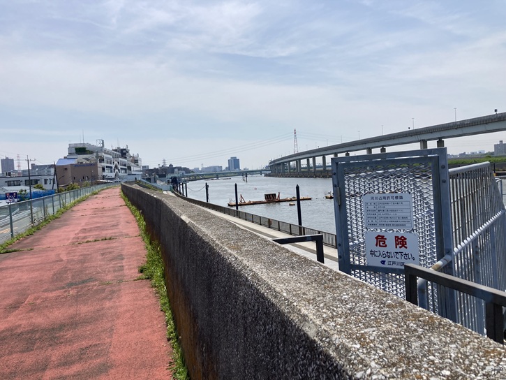 都道450号線を渡った先は中川の堤防になっています。