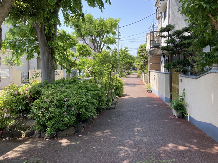 車道のある区間では、歩道が緑道になっています。