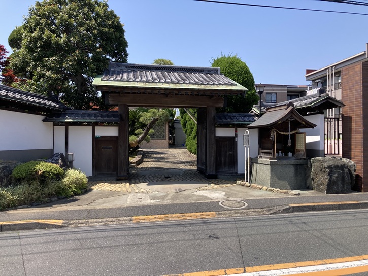 帰りのバス停に向かう途中の篠崎街道に面して明福寺があります。明福寺は、嘉禄二年(1226年)に親鸞によって開山されました。親鸞が常陸国茨城郡笠間(現在の茨城県笠間市)から京都に向かう途中、此の地で旱魃に苦しんでいる村人を救うために雨乞いをして雨を降らせたことがきっかけで寺を創建しました。その後の戦乱で廃寺化しましたが、文明年間(1469年〜1487年)に徳誉笈公が中興し、その際に浄土宗に転宗しました。現在の明福寺の宗派は浄土宗になっていますが、境内には今も親鸞が自画像を彫る際に鏡代わりにした「鏡ヶ池」や、その際に袈裟を掛けた「袈裟かけの松」など、親鸞に纏わるものが残されています。また、「親鸞堂」と呼ばれる堂があり、親鸞像が安置されています。