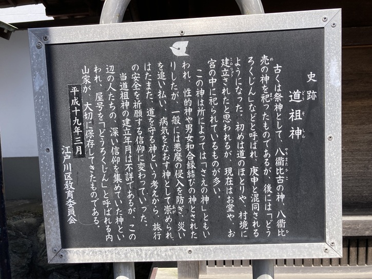 門前には、道祖神を祀った小さな祠が建っています。