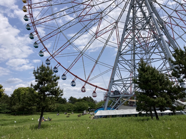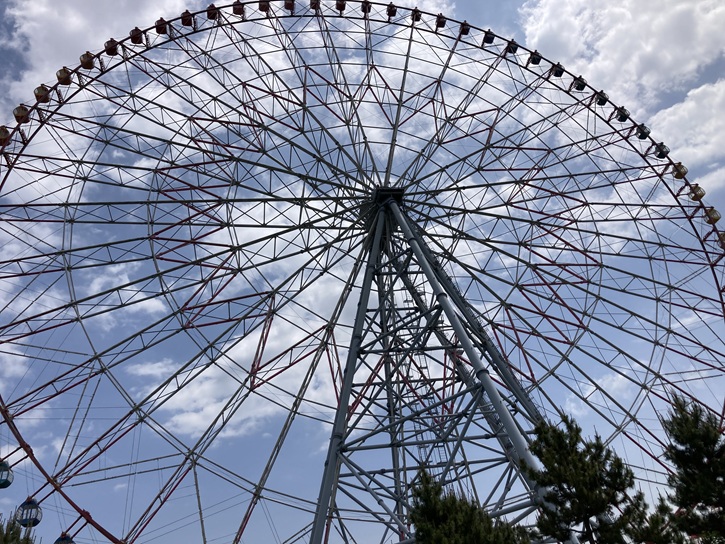 ゴール地点の葛西臨海公園大観覧車前に着きました。「ダイヤと花の大観覧車」は、平成十三年(2001年)3月17日にオープンし、地上高は117mで、平成二十八年(2016年)7月1日に大阪府吹田市の「REDHORSE OSAKA WHEEL」(地上高123m)が完成するまでは日本一の高さでした。ゴンドラからは、東京ディズニーリゾートやレインボーブリッジ、東京タワーや東京スカイツリー、東京湾アクアラインの海ほたる、房総半島、富士山などが一望できます。