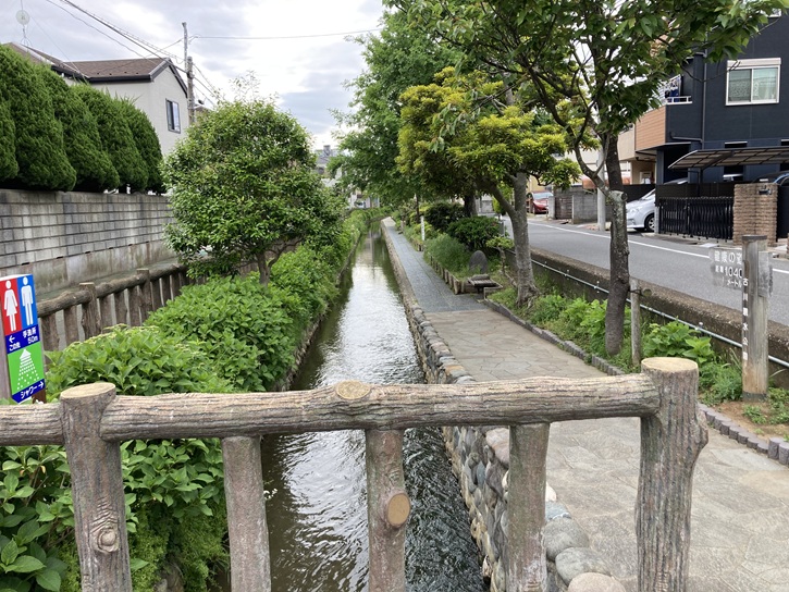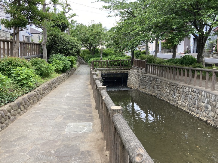 遊歩道の脇にはせせらぎが流れています。旧江戸川から取水した水なのでしょう。