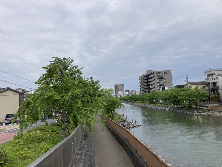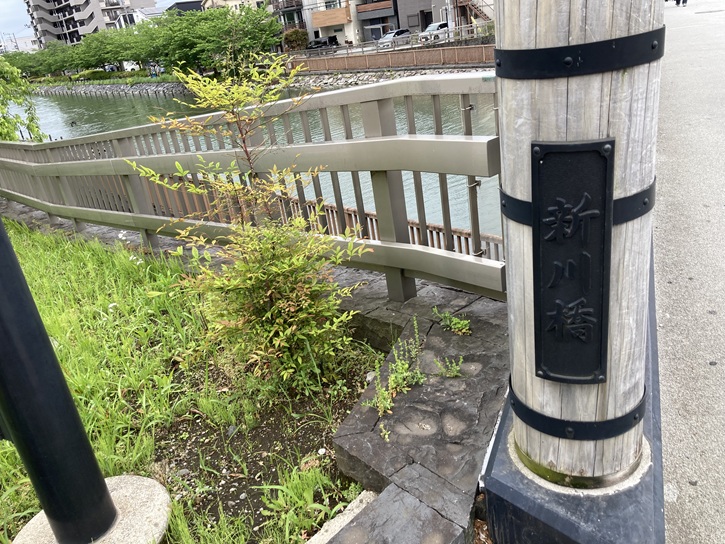 ゴール地点の古川橋に着きました。水路は古川橋の手前で行き止まりになっています。ここから先は地下水路を伝って新川に流れ出しているのでしょう。