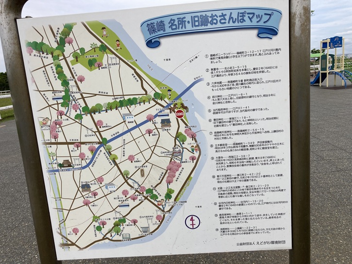 ポニーランドの脇に周辺の名所旧跡を紹介する案内板が立っています。何故か、神社やお寺が多いですね。