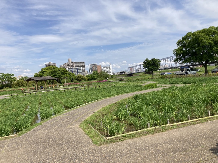 - 昭和五十七年6月開園、昭和六十三年利根川百景に選定。百種類5万本のハナショウブをゆっくりと鑑賞できるように回遊式庭園となっている。