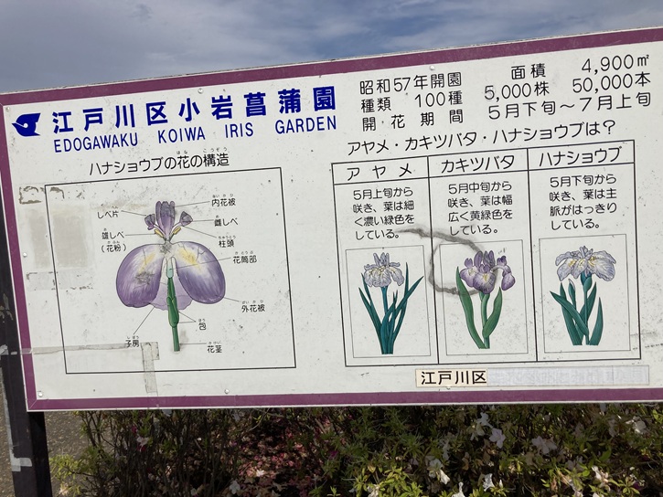 小岩菖蒲園の概要と菖蒲の種類が解説してあります。