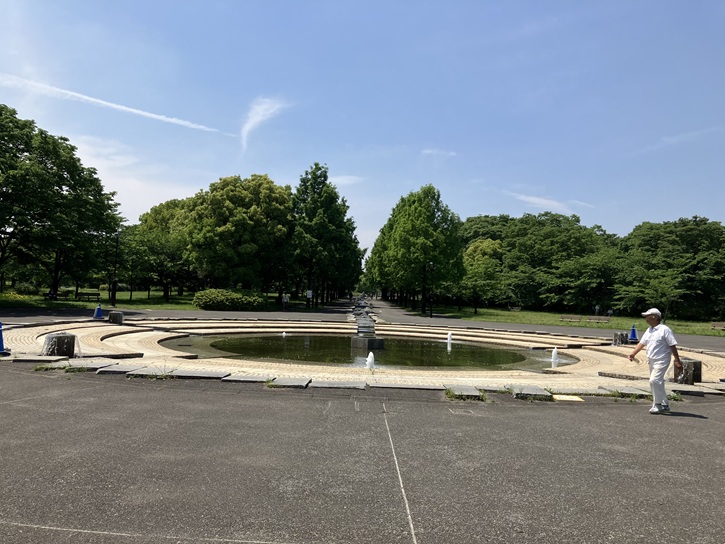 公園の入口広場にある噴水から奥の噴水広場に向かって水路が引かれています。両側には高い樹木が並び、なかなかの景観です。