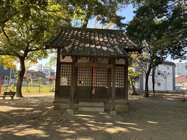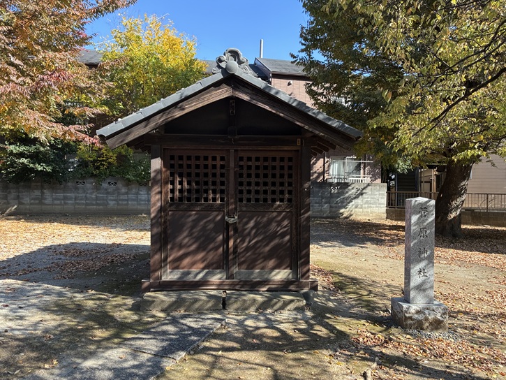 境内社に菅原神社があります。菅原神社は北野天満宮から御霊分けをした神社です。諏訪神社は見当たりませんでした。
