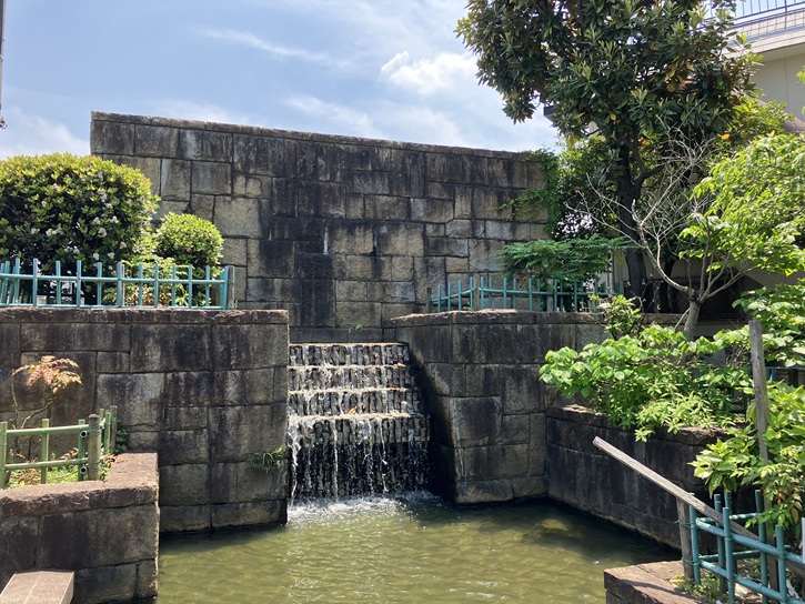 水路は途中で地下に潜り、遊歩道が終端まで延びています。