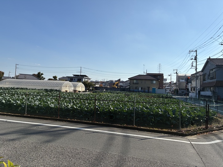 住宅地の中に農地が残っています。いろんな野菜が植えられていますね。