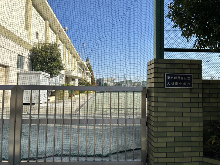 入谷中郷公園と道路を挟んだ向かい側に足立区立入谷南中学校があります。入谷南中は、昭和六十一年4月に開校しました。時あたかもハレー彗星が76年ぶりに地球に戻ってきた年でした。